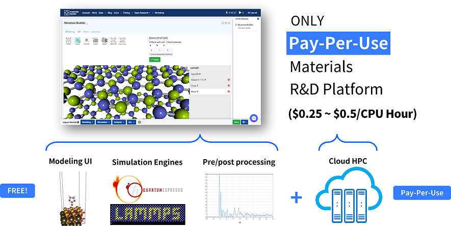 Materials Square (MatSQ) is a web-based simulation platform that provides an intuitive interface, convenient workflow, and affordable pay-as-you-go cloud server for anyone to use material simulations easily.