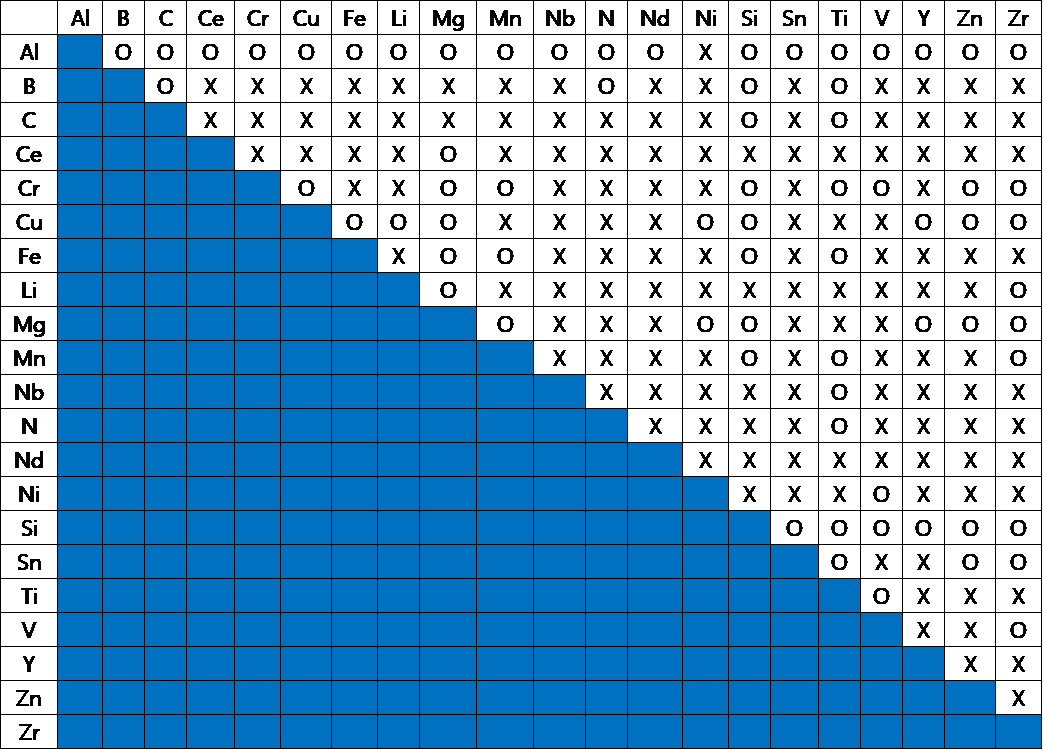 Al, B, C, Ce, Cr, Cu, Fe, Li, Mg, Mn, N, Nb, Nd, Ni, Si, Sn, Ti, V, Y, Zn, Zr