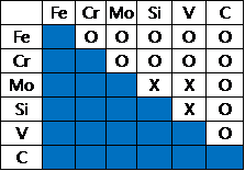 Cr < 30 | Mo < 10 | Si < 5 | V < 5 | C < 2