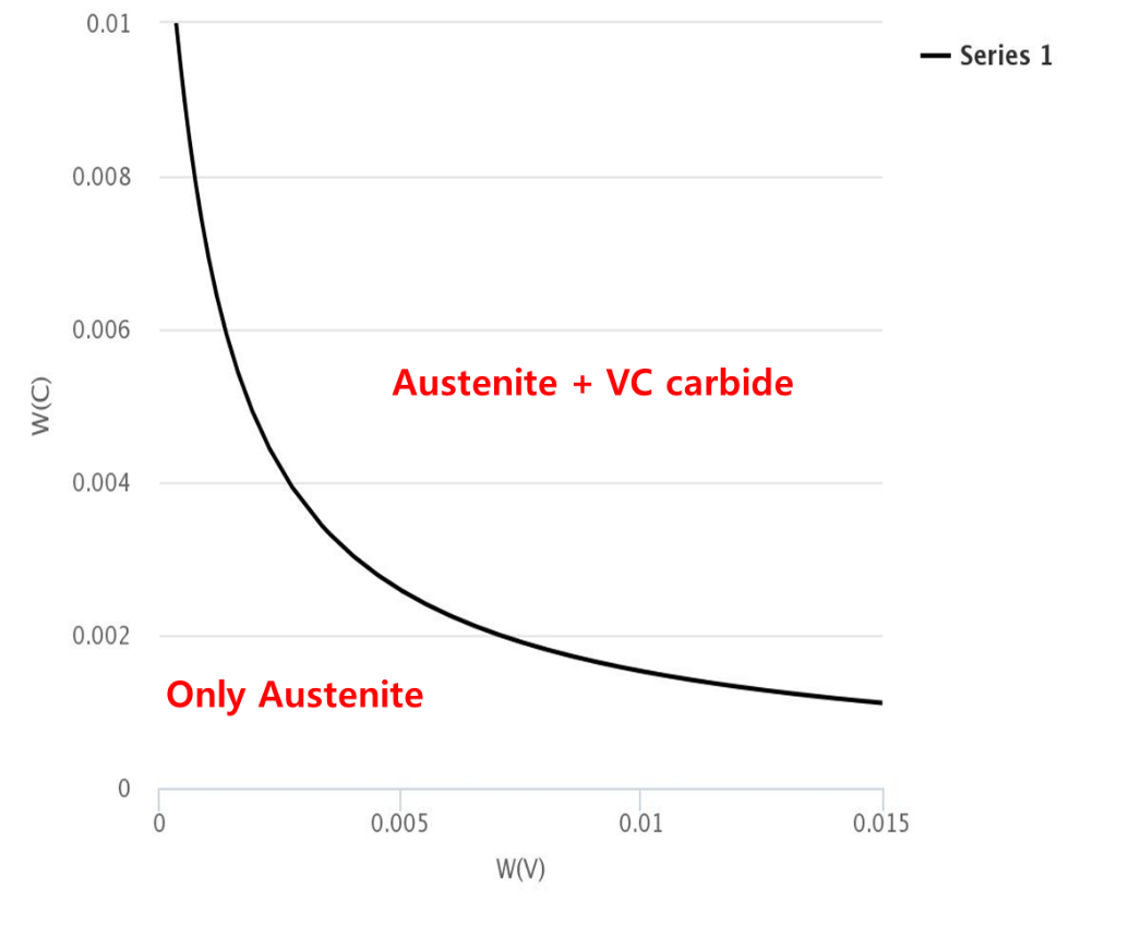 We can check the crystallization amout of VC carbide exists in the Austenite according to how much the amount of V and C at the final.