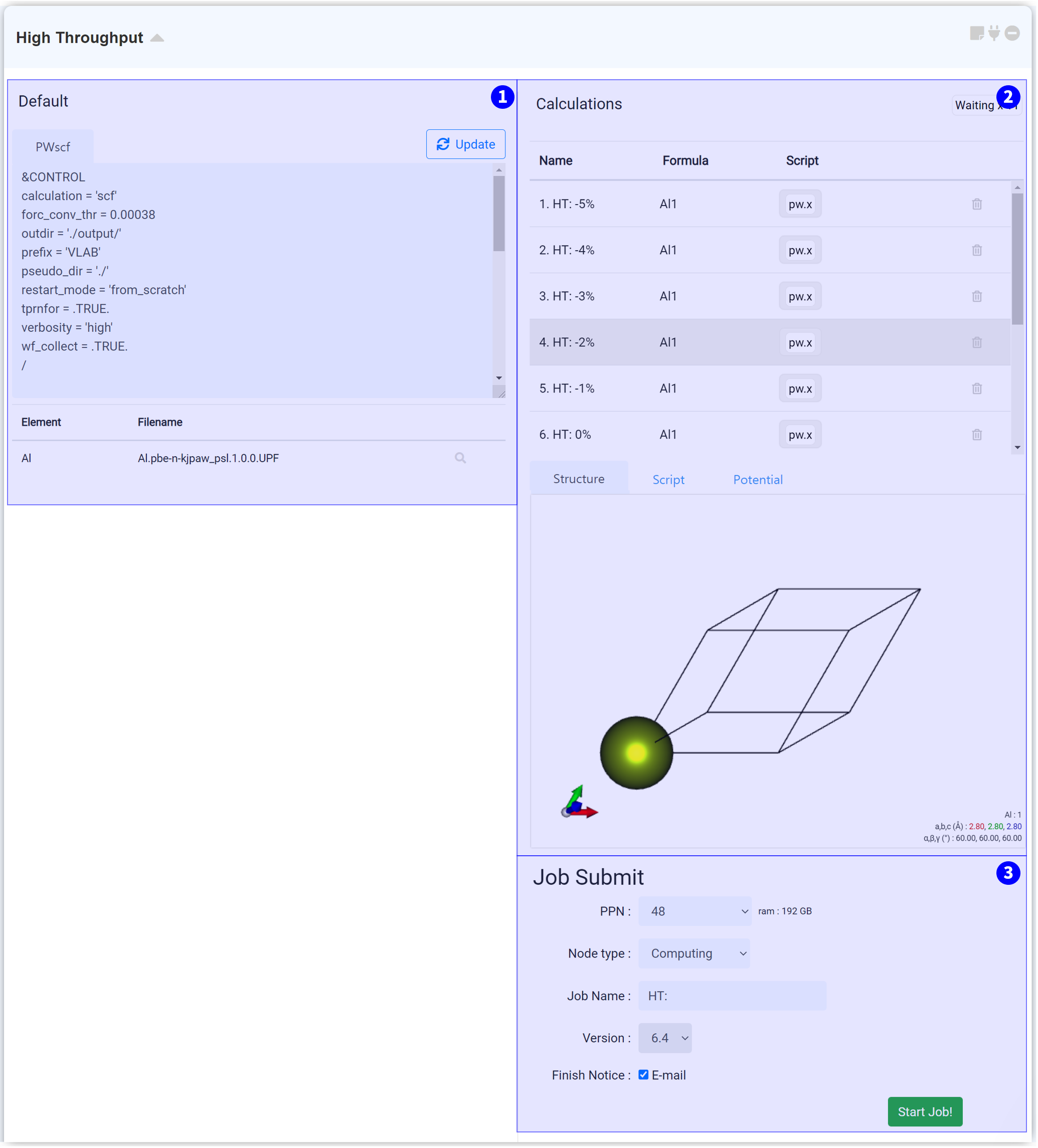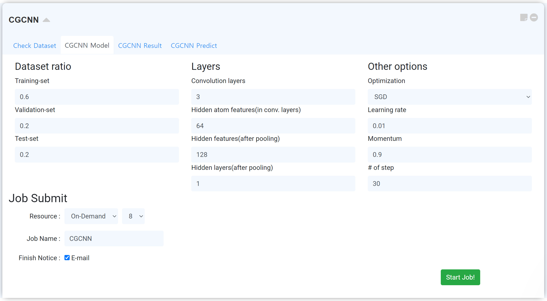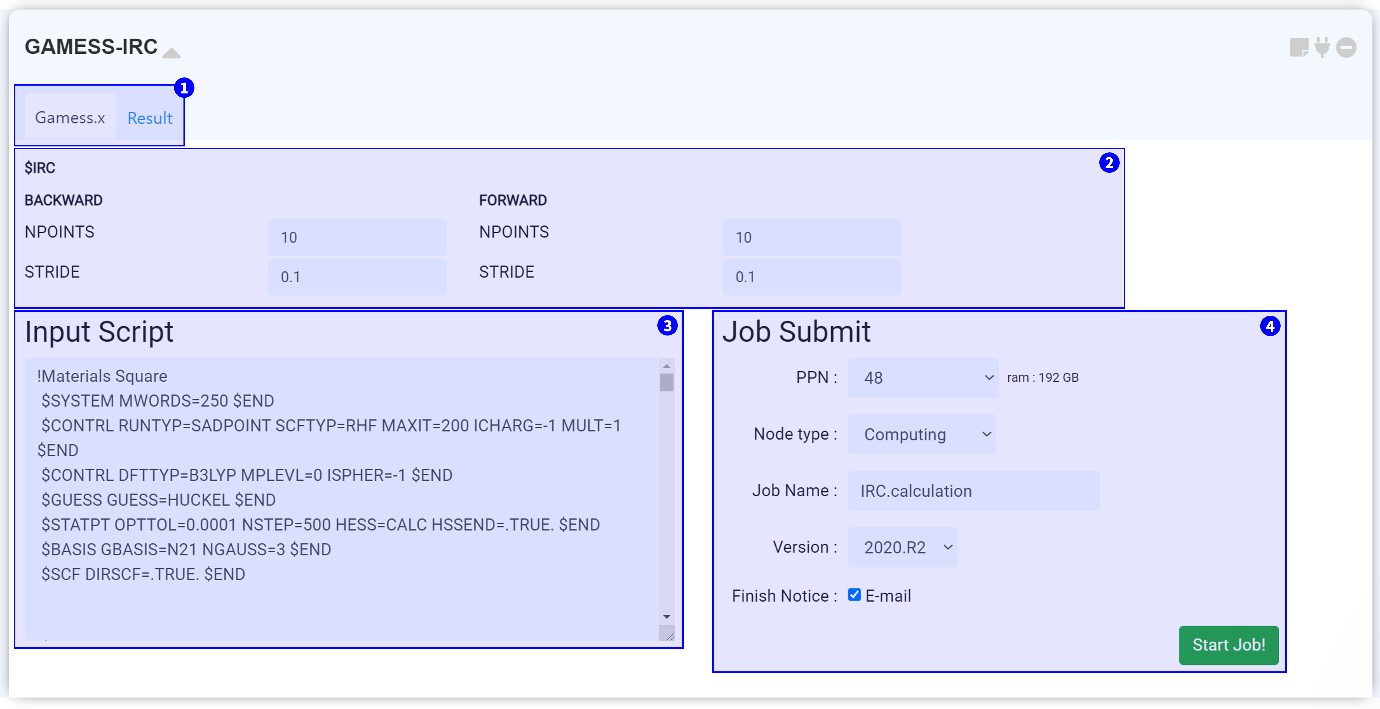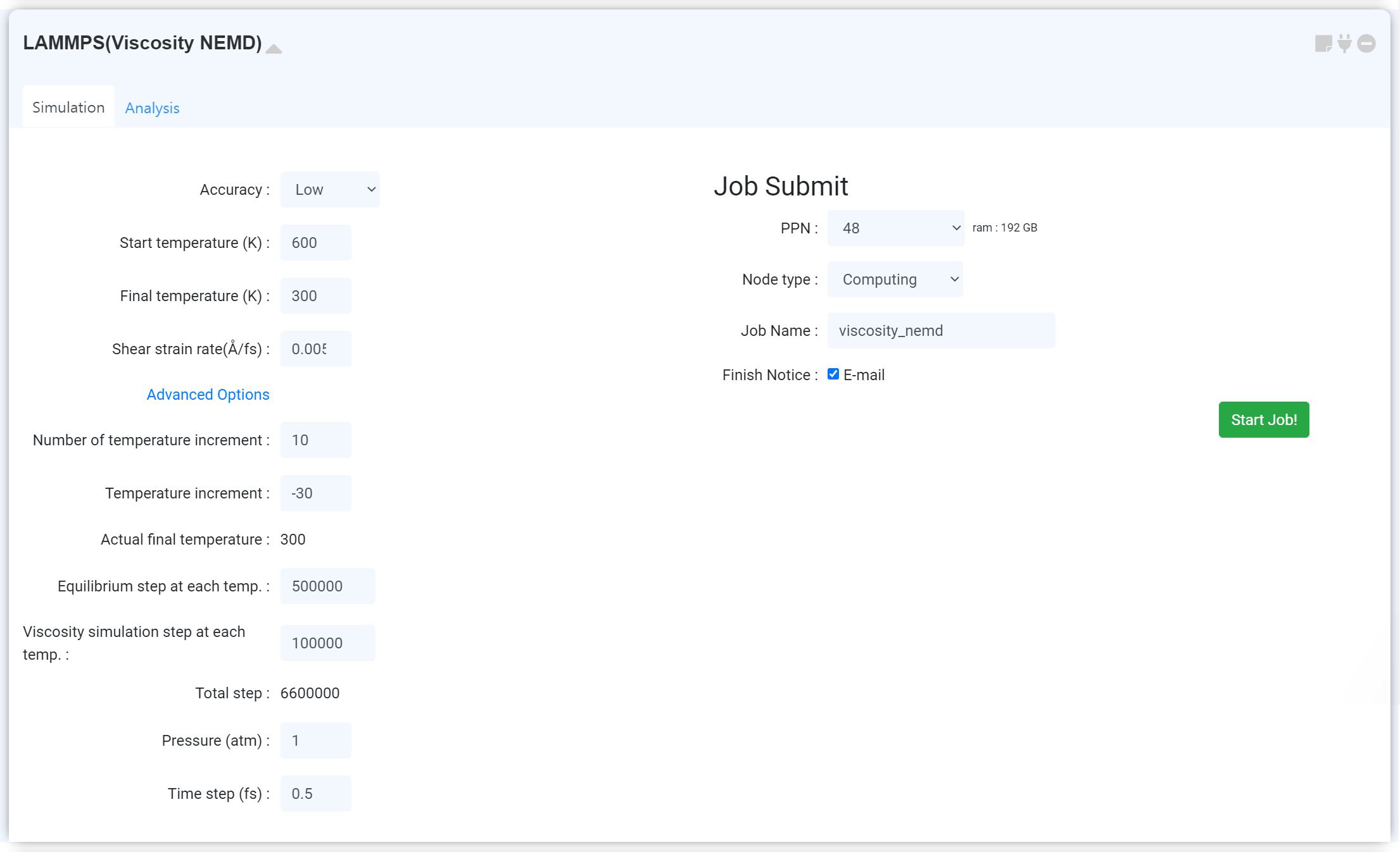 Next, set the job name and click the 'Start Job!' button to start the calculation.