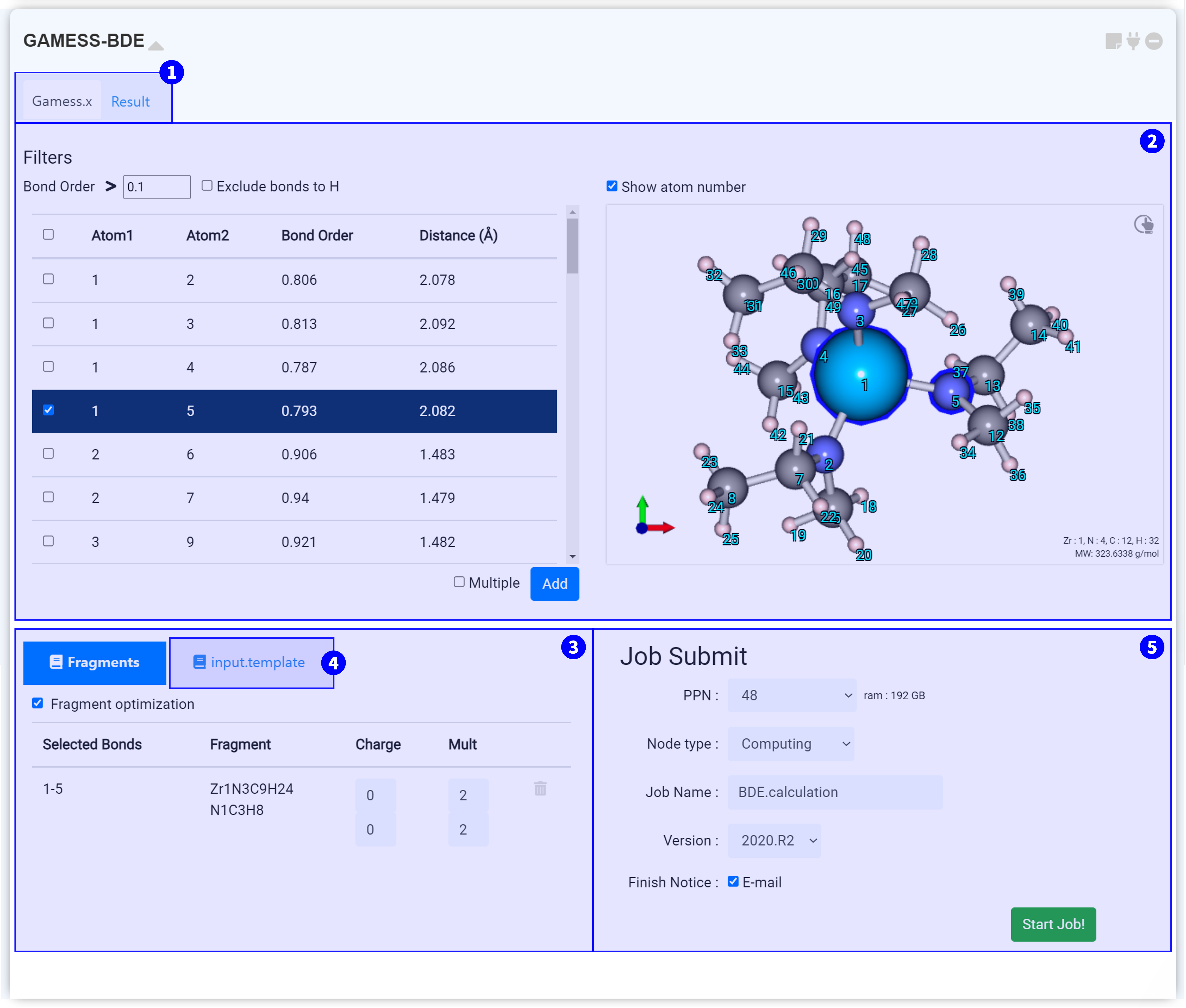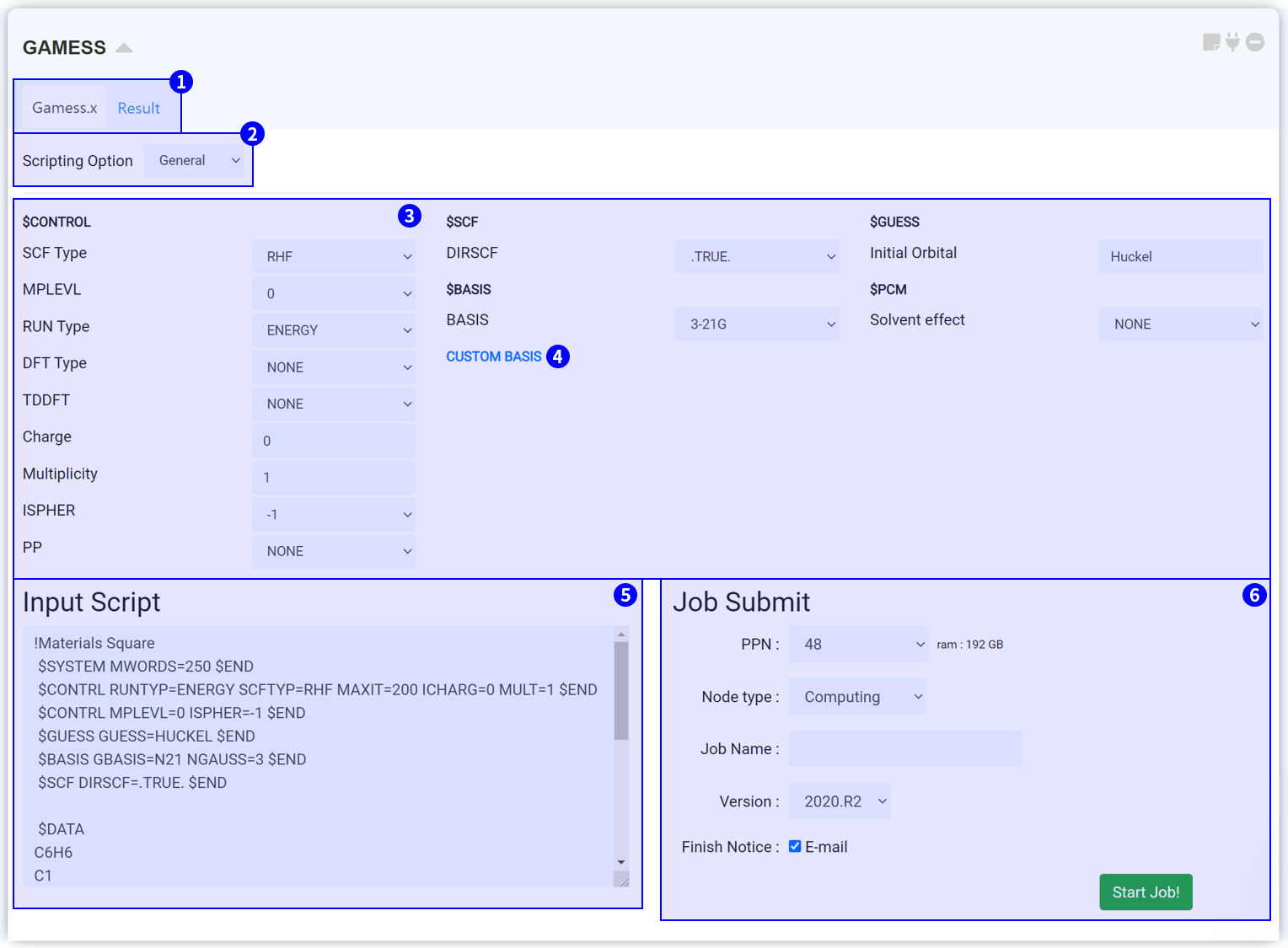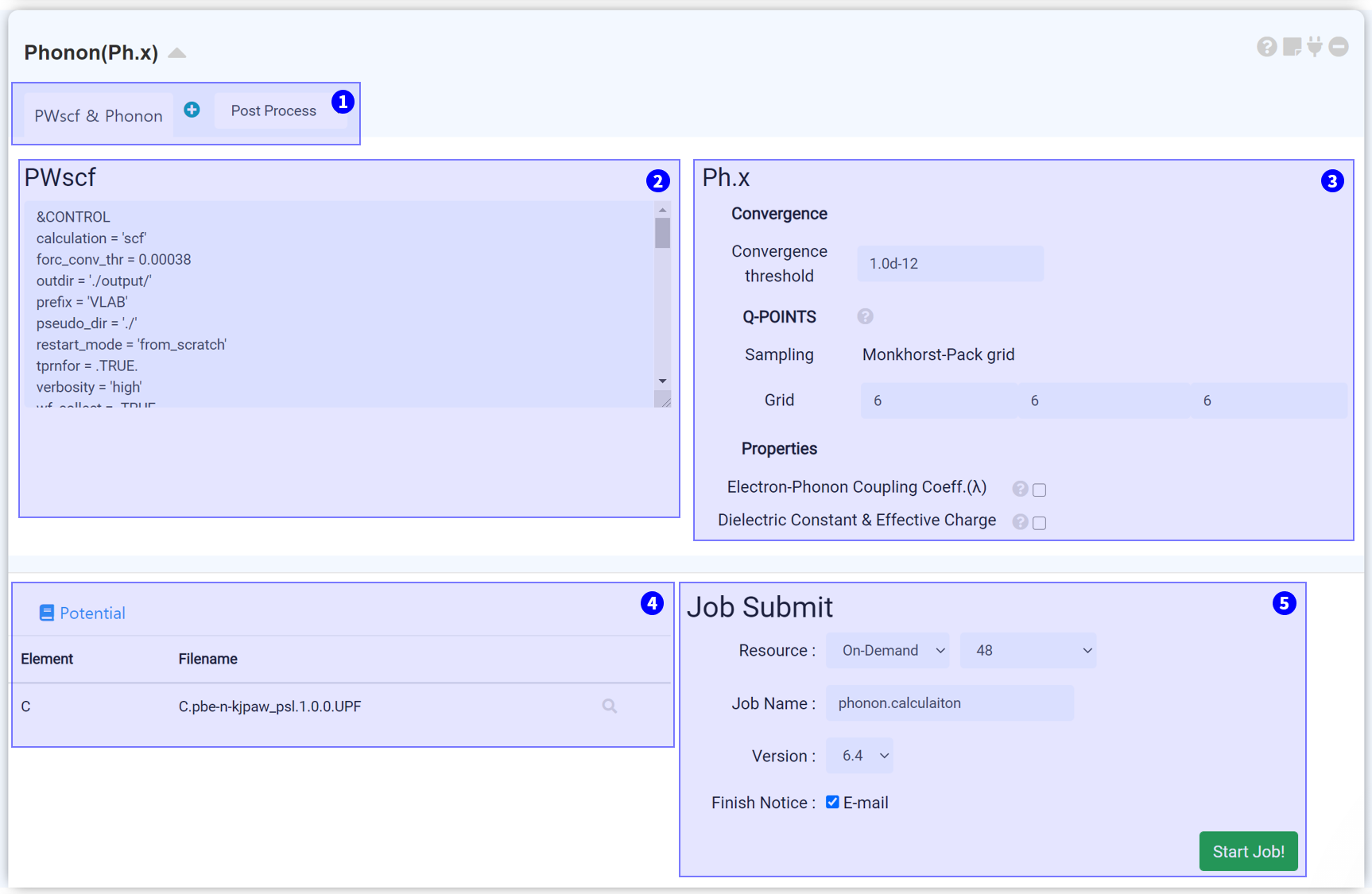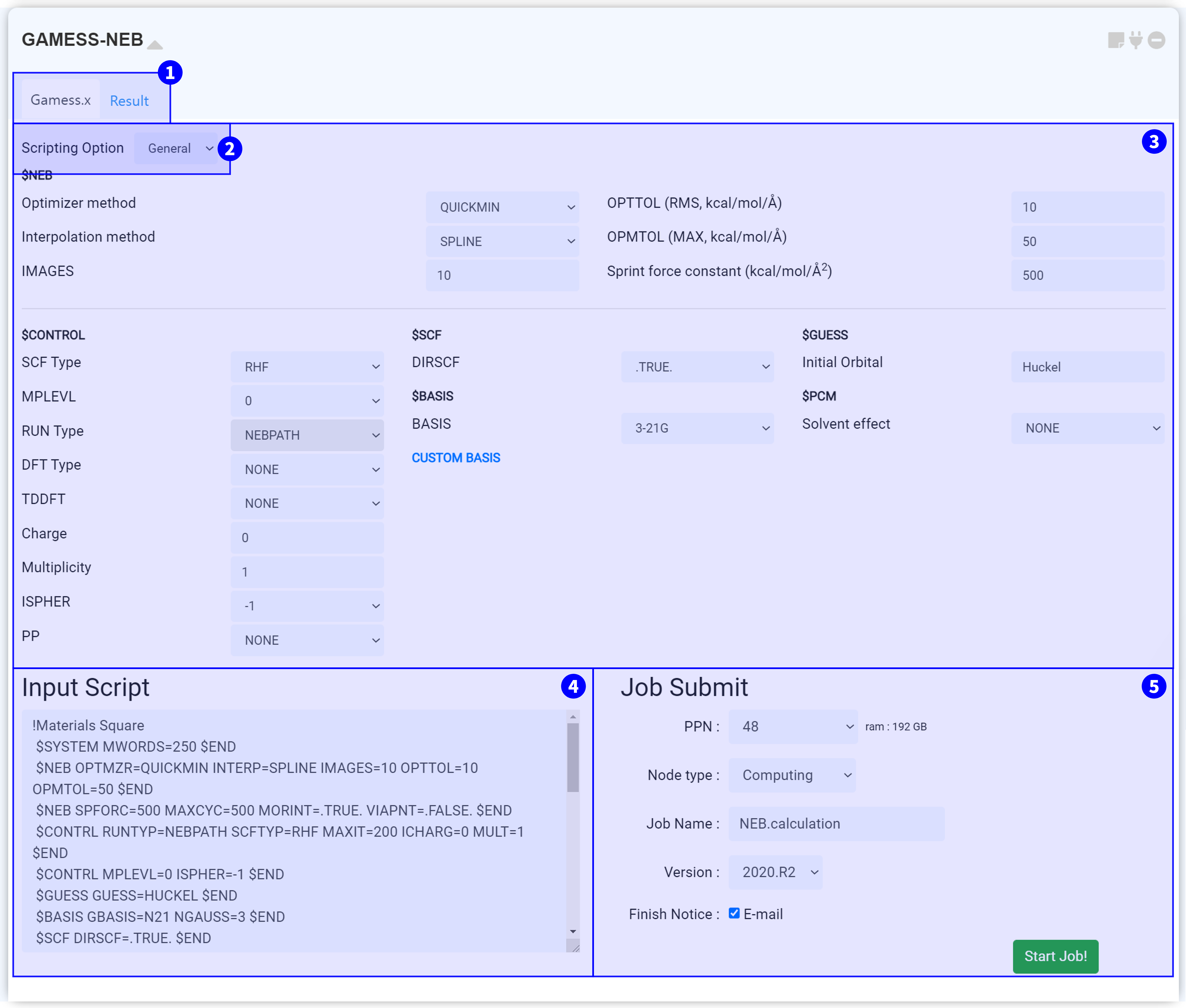 Next, set the job name and click the 'Start Job!' button to start the calculation.