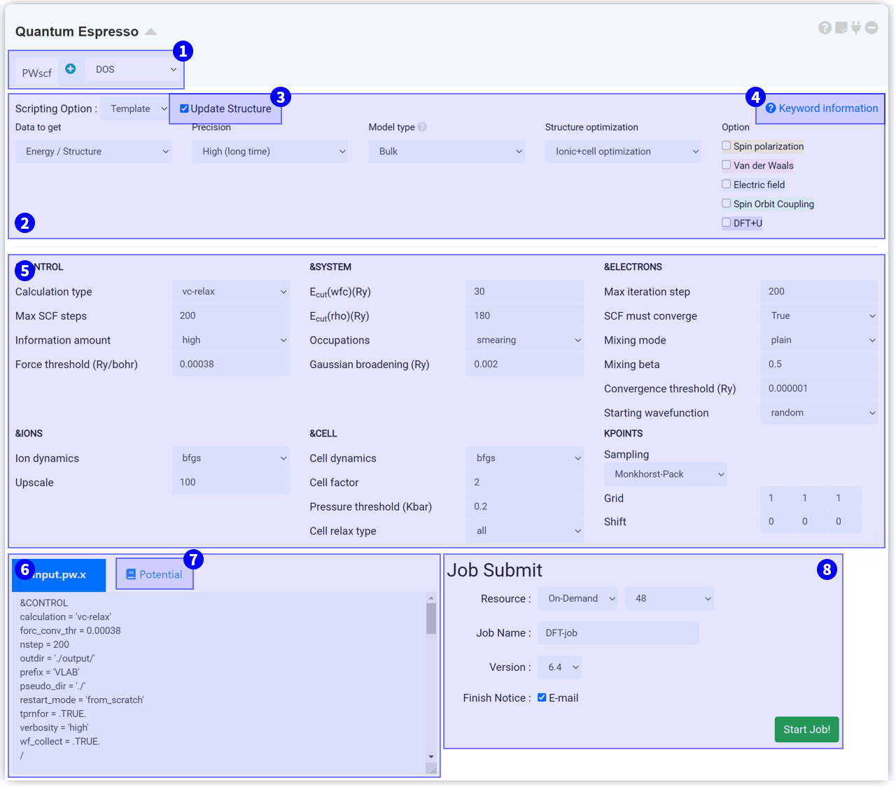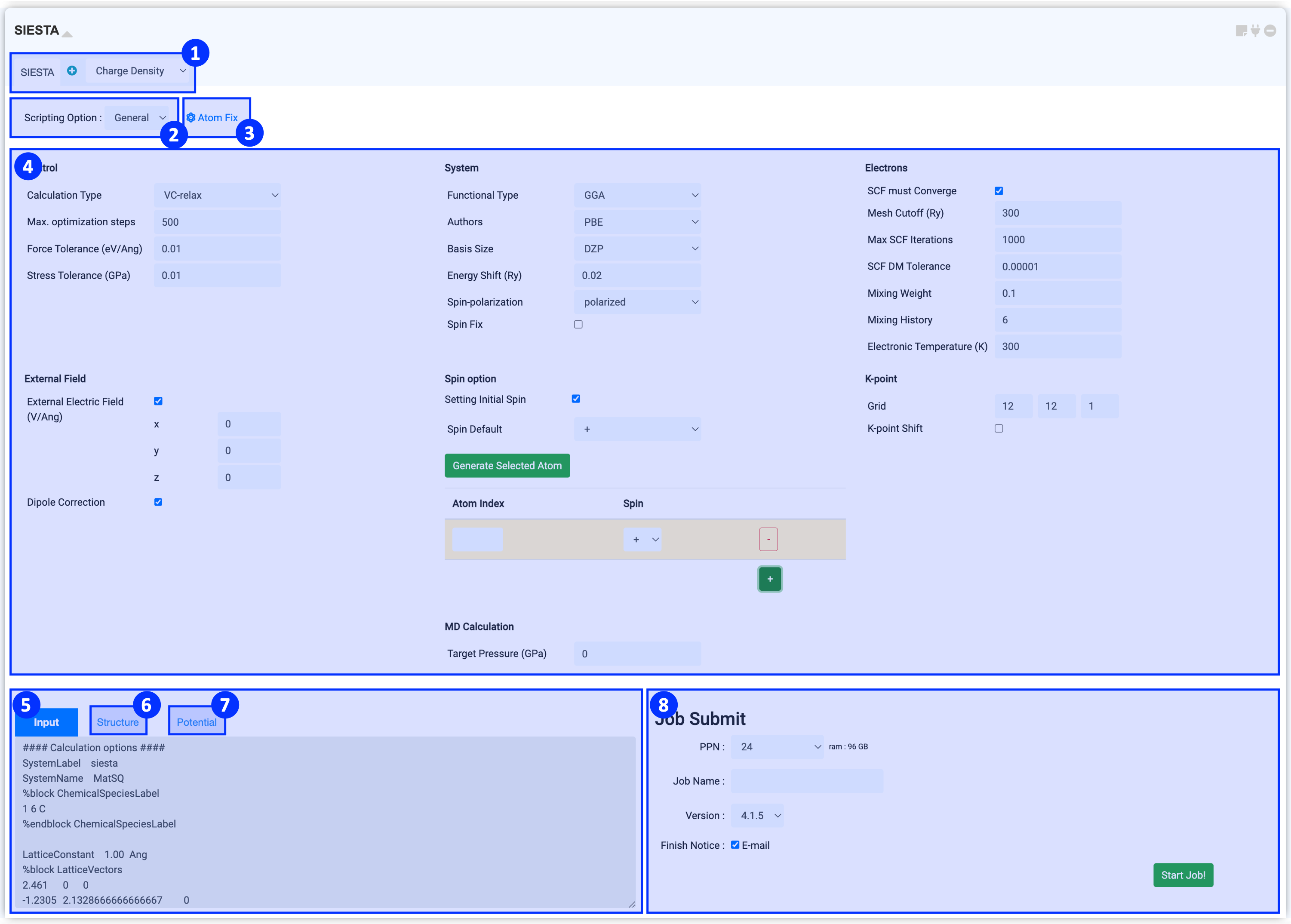 If you have completed all settings in steps ①~⑦, you are ready to submit your job. Please refer to the Job submit document to start the calculation process.