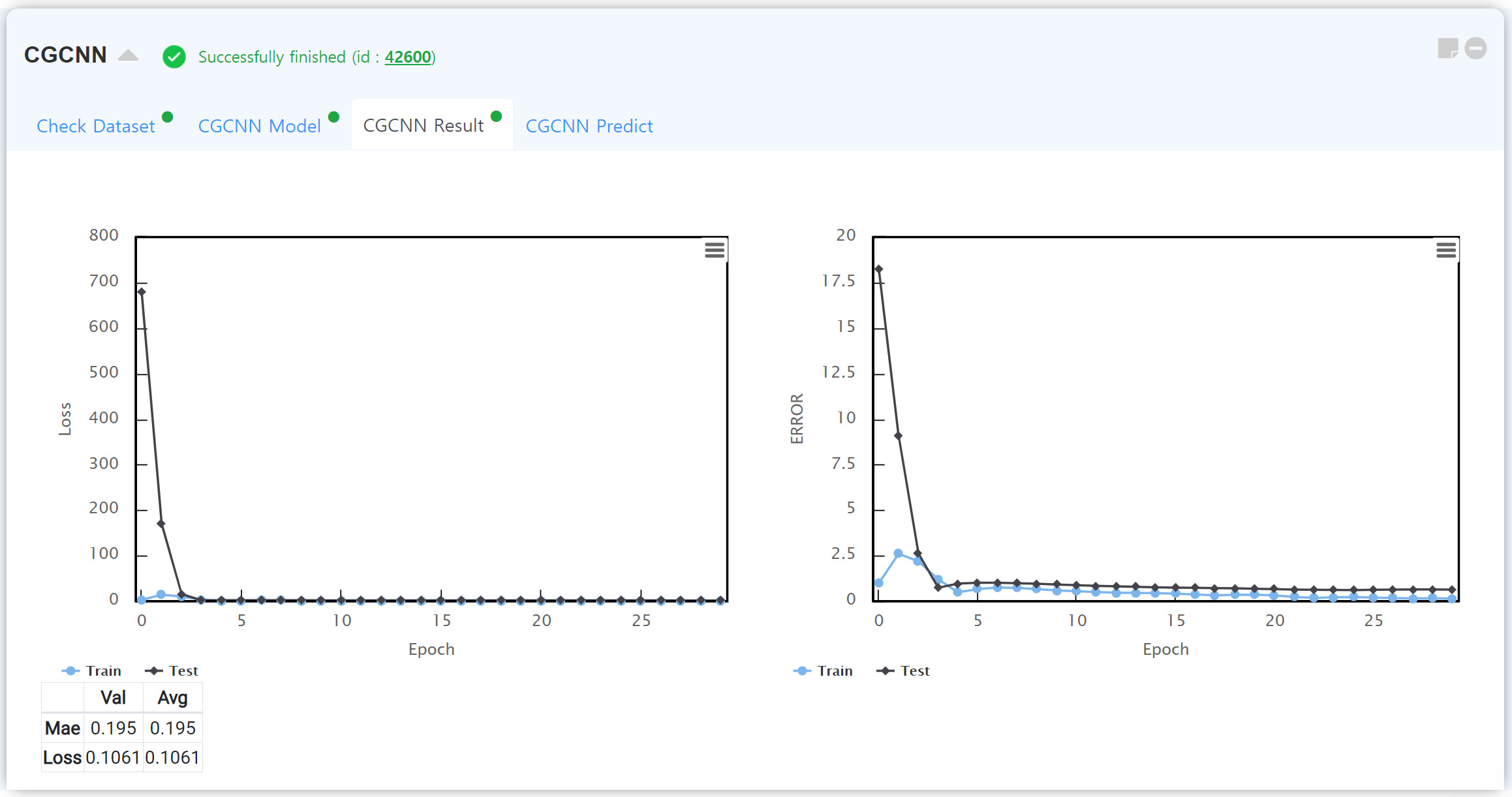 After the job has finished, click 'Update Status' button to update the job status. Then you can see the results at the 'Analysis' tab.
