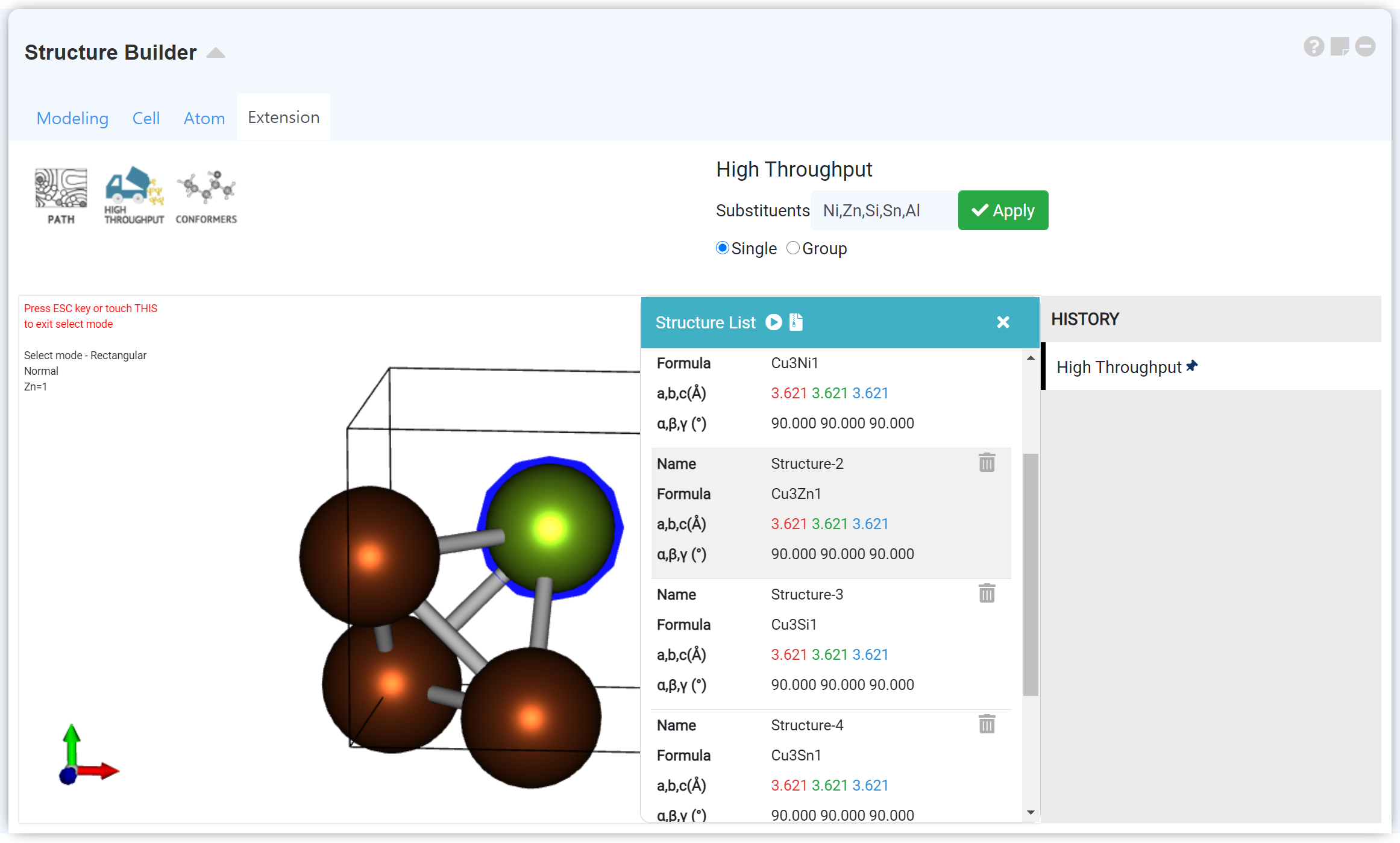'Structure Builder' 모듈 'Extension' 탭의 'High Throughput' 메뉴를 사용하여 다양한 dopant로 치환된 구조 세트를 만들고, high throughput 모듈을 이용해 구조 최적화 계산 및 전자구조 특성 계산을 한 번에 수행할 수 있습니다. 자세한 내용은 'Structure Builder' 모듈 문서의 Manipulate the structure > Extension 탭을 참고하십시오.